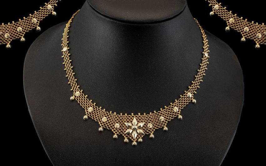 Antique Period Ladies - Superb 18ct Gold Intricate Worked Lacework Necklace of Exquisite Form / Design. Stamped 750 - 18ct. Wonderful Workmanship and Condition. Expensive to Make Today. 23.6 grams. 16.5 Inches - 41.25 cms.
