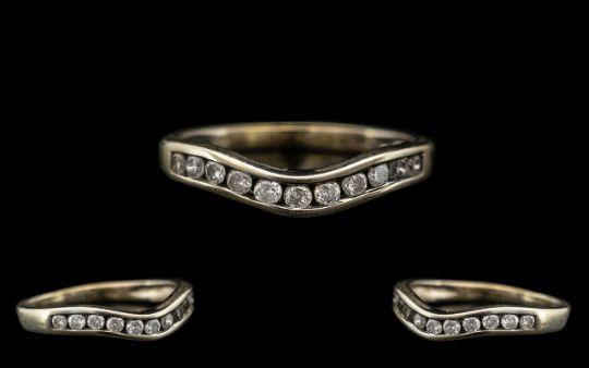 9ct White Gold Contemporary Wishbone Design Diamond Set Ring. Fully hallmarked for 9ct. Cal. diamond weight 0.25 pts. Weight stamped to interior of shank. Ring size K. Excellent all aspects of condition.