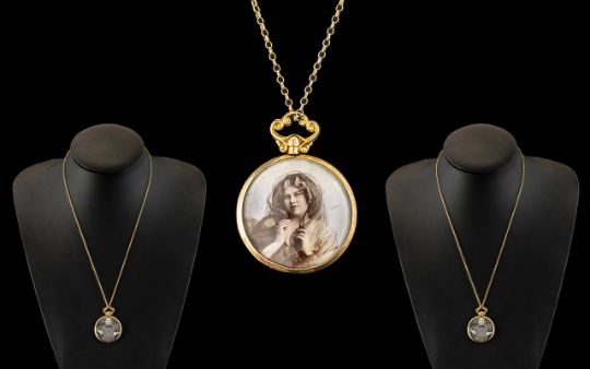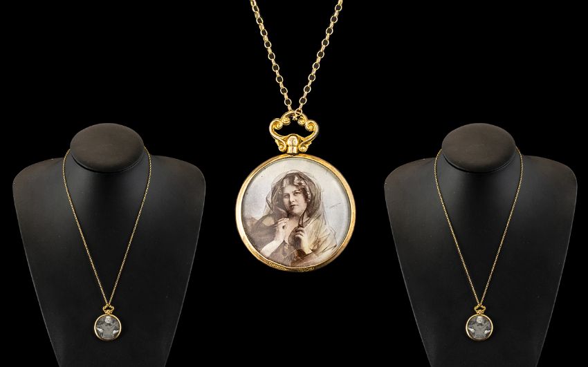 Antique Period Attractive 9ct Gold Mounted Double Locket Pendant - Attached to a 9ct Gold Chain. Chain and Locket Marked for 9ct Gold. Locket Size 1.25 Inches - 3.20 cms Wide & Chain Size 19 Inches - 47 cms. 5.8 grams. Excellent Condition In All Aspects.