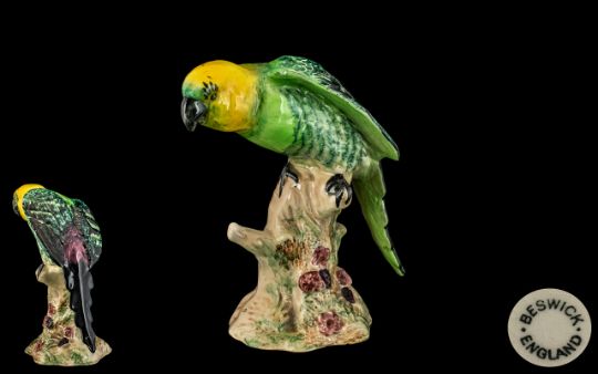 Beswick - Hand Painted Bird Figure ' Parakeet ' Model No 930. Designer A. Gredington. Issued 1941 - 1975, Height 6 Inches - 15 cms. Please See Photo.