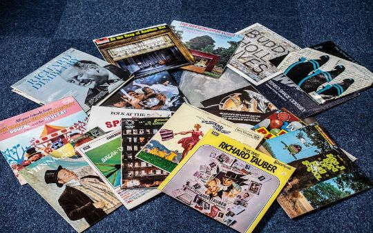 Box of LP Albums, 23 in total, including Elvis 'Golden Records Volume 1', John Lennon 'Imagine', Boney M, Edith Piaf, Proms, Spinners, Buddy Holly, West Side Story, assorted children's music albums, etc.