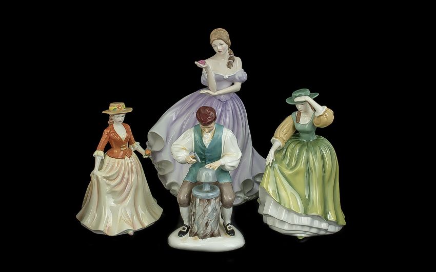 Royal Doulton Figures. ( 4 ) Royal Doulton Figures to Includes The Silversmiths of Williamsburg, Buttercup, Blossom and Autumn Stroll.