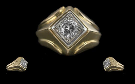 18ct Gold Pleasing Quality Single Stone Diamond Set Ring marked 18ct to interior of shank, the round, modern faceted, diamond of excellent colour and clarity, est. diamond weight 0.45pts, ring size M/N, weight 12.2g; Solid Shank and In Good Condition. Low Estimate.