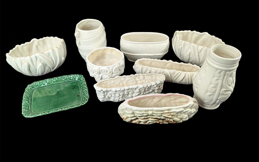 A Box Containing a Collection of Sylvac Pottery, to include, troughs, vases, dishes, etc. Mostly cream glazed. Approx 10 pieces.