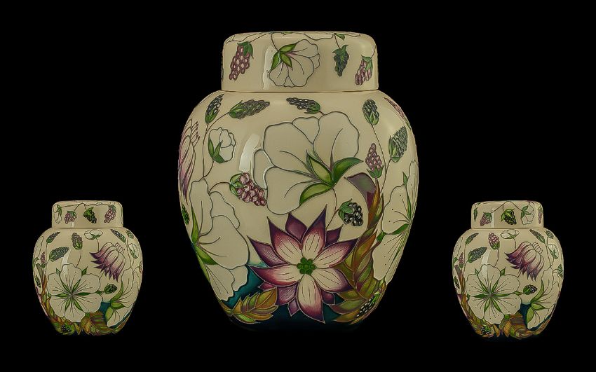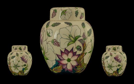 Moorcroft Signed Large Tubelined Lidded Ginger Jar "Bramble Revisited" Design, designer Alicia Amison, dated 2010, height 8 inches (20cms);