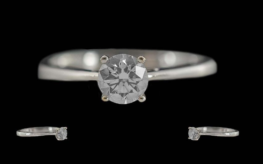 Ladies 18ct White Gold Single Stone Diamond Set Ring, Marked 18ct to Interior of Shank. The Modern Round Brilliant Cut Diamonds of Top Colour / Clarity. Est Colour G - H, Est Clarity VVS2, Ring Size Q. Weight 2.6 grams.