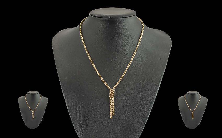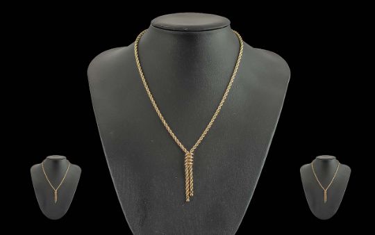 A Fine 9ct Gold Rope Twist and Drop Necklet ( Lasso ) Design. Marked 9ct. Weight 4.7 grams. Length 20 Inches - 50 cms.