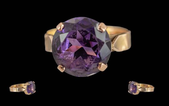 Ladies 18ct Gold Pleasing Quality Single Stone Amethyst Set Ring, Egyptian Gold Mark to Interior of Shank, Large Faceted Amethyst of Good Colour / Clarity. Est Weight 5.00 cts, Ring Size N - O, Weight 4.9 grams.
