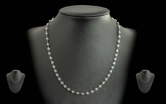 Ladies Contemporary 18ct White Gold Diamond Set Necklace / Collet. Set with 30 Brilliant Cut White Diamonds, Well Matched and Very Good Colour / Clarity, Est Diamond Weight 2.00 cts, Low Estimate for this Quality. Length 16 Inches - 40 cms.
