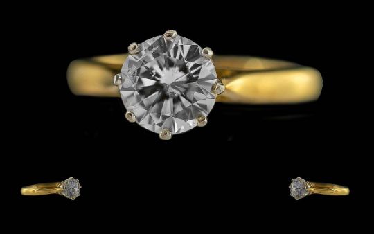 ' Hearts of Fire ' Ladies Excellent 18ct Gold Single Stone Diamond Set Ring. Full Hallmark to Interior of Shank, The Modern Round Brilliant Cut Diamond of Top Colour / Clarity. Est Weight 1.00 ct. Ring Size H.