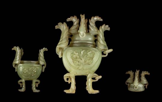 Decorative Carved Jade Urn & Cover, approx. 5" x 4".