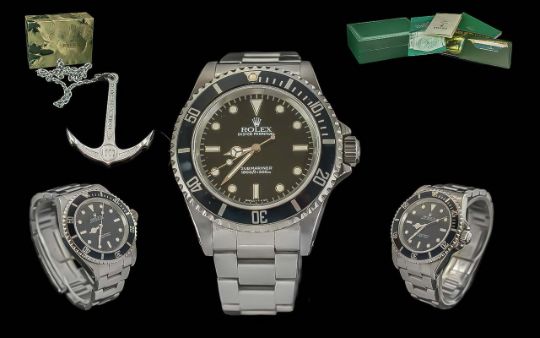 Rolex Oyster Perpetual Gents Steel Submariner Wrist Watch In Excellent Condition. Serial Number 119571, Model No 14060, Date of Rolex Service 01-08-2023, Date of Purchase 1st August 1992. With Receipt, Rolex Boxes, Wallets, Cards, Booklet, Paperwork etc. Excellent Condition and Working at time of Cataloging.