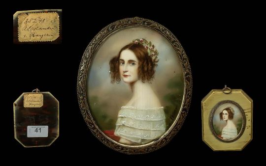 Joseph Karl Stieler 1781 - 1858 - A Superb Signed Portrait Miniature of Princess Alexandra Amalie of Bavaria, Royal Court Painter for The Bavarian Kings Between 1820 - 1855, Size of Portrait 60 x 50 mm.
