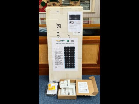High Current Battery Charging Solar Panel Kit, for vehicle, caravan, shed or boat. Complete kit comprises monocrystalline panel, 90 cm leads and connectors, 2 x 5m lengths of professional solar cable and sola couplers, 12A analogue charge controller, 80 cm fused battery leads with terminals, corner mounts, waterproof double entry cable system, etc. Along with all instructions, spare fuses and cable ties.