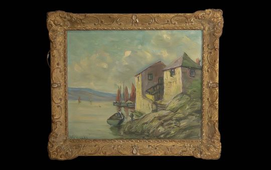H Bennett Late 19th Century Original Oil Painting depicting Fowey harbour, framed in an ornate gilt swept frame. Overall size 16" x 19". Signed to bottom left.